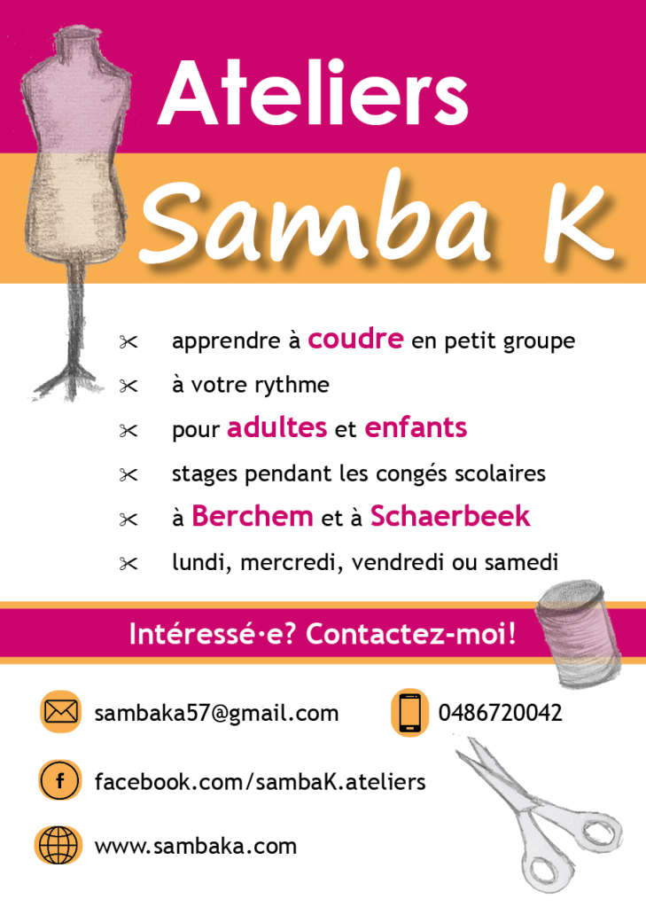 Des séances de couture en petits groupes, pour adultes, enfants ou ados, dans une ambiance détendue à Bruxelles… ça vous parle? Alors, les ateliers Samba K. sont faits pour vous!